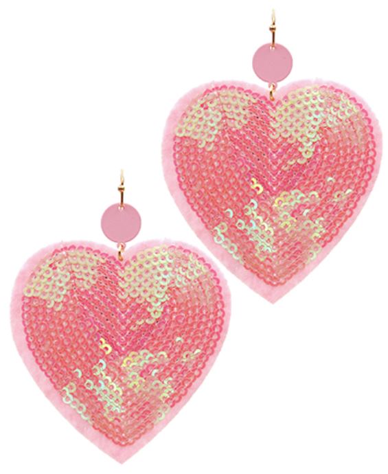 These Sequin Patch Heart Earrings are constructed with fabric, sequin, and a fishhook clasp for easy wearing. With a length of 2.75", these earrings are perfect for adding a touch of sparkle to any outfit. The combination of materials creates a unique and eye-catching design that will surely make a statement.
